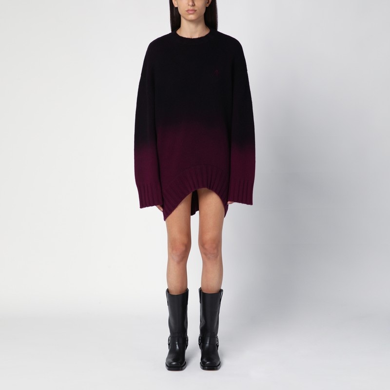 Pink degrade wool and cashmere blend crew-neck jumper from The Attico featuring long sleeves, tone-on-tone embroidered logo on the chest, ribbed hems, asymmetric hem and oversized fit.