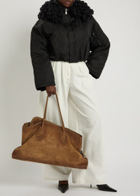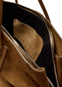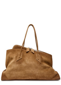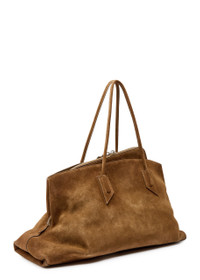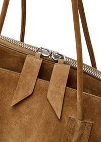 Info & Care The Attico suede tote Two top handles, asymmetric design, debossed designer stamp, feet, three compartments, internal slip pocket, fully lined Zip-fastening across top Size & Fit Width: 24 inches/ 61cm Height 1: 16 inches/ 41cm; height 2: 10 inches/ 25.5cm Depth: 8 inches/ 20cm Top handle drop: 10 inches/ 25.5cm