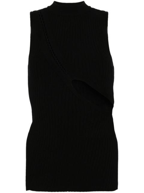 cut-out ribbed top Highlights - Red - Ribbed knit - Cutout detail - Sleeveless - High neck - Asymmetric hem Made in Italy Composition Cotton 100% SIZE & FIT FittingInformation Designed for a close fit throughout Made with a midweight knit, this piece offers some stretch Washing instructions Read Manufacturer Guidelines