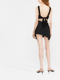 tied-waist asymmetric mini skirt black tied waist high waist flared asymmetric hem above-knee length Made in Italy Composition Polyester 68%, Viscose 29%, Spandex/Elastane 3% SIZE & FIT Model measurements Height 5 ft 10 in(1.78 m) Bust/Chest 31.49 in(80 cm) Hips 35.43 in(90 cm) Waist 24.4 in(62 cm) FittingInformation This piece fits true to size. We recommend you get your regular size Designed for a loose fit with a close fit at the waist Made with a mid-weight stretch fabric Washing instructions Machine Wash