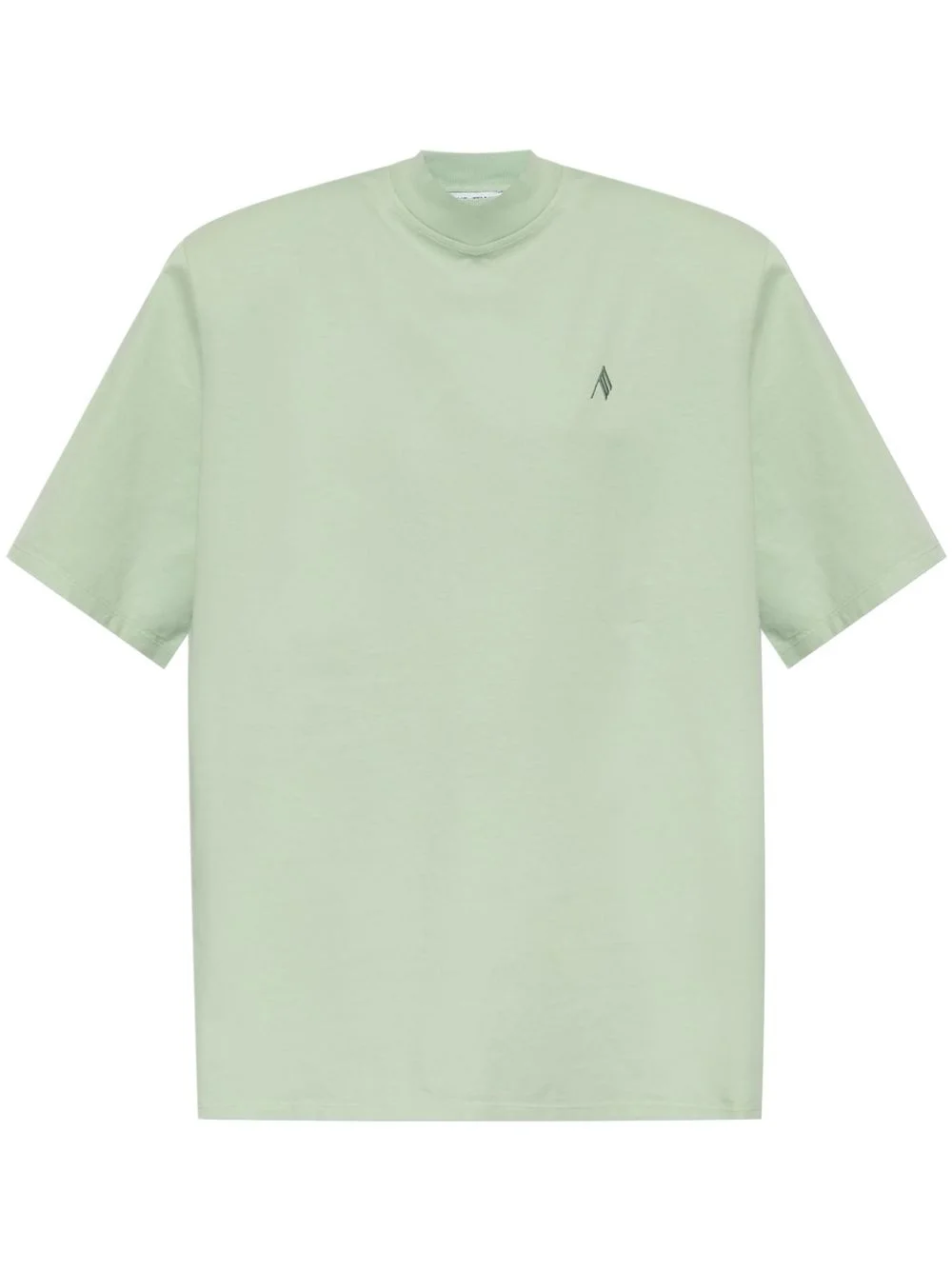logo-embroidered T-shirt Highlights - Mint green - Mock neck - Drop shoulder - Short sleeves - Straight hem Imported Composition Cotton 100% Washing instructions Read Manufacturer Guidelines