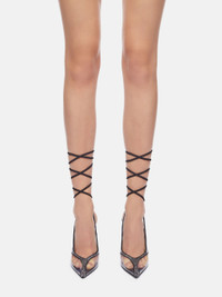 ''Venus Chrome'' slingback in black suede with crystal thermo-adhesives rhinestones and transparent pvc, heel height 105mm. Style 236WS739L075T212 SIZE & FIT Model wears size 39 DETAILS Main leather 50%: 100% goat leather dyed, capra hircus farm raised coo: Spain, second material: 100% strass, glass, third fabric 50%: 100% polivinilcloruro, insole and lining: 100% goat leather dyed, capra hircus farm raised coo: India, sole: 100% bovine leather dyed, bos taurus farm raised coo: France, heel 105mm - style WS739L075T212