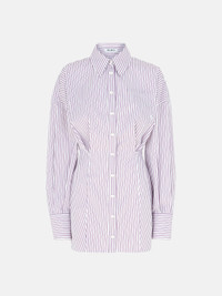 Mini shirt dress in white and purple striped cotton. Made in Italy. Style 250WCA00384CCC054AA871 SIZE & FIT The model is wearing a size 40 and her height is 69,6 in, bust 30,7 in, waist 23,2 in, hips 34,6 in - height 177 cm, bust 78 cm, waist 59 cm, hips 88 cm. Regular fit. We recommend taking your true size. DETAILS Main Material: 100% cotton