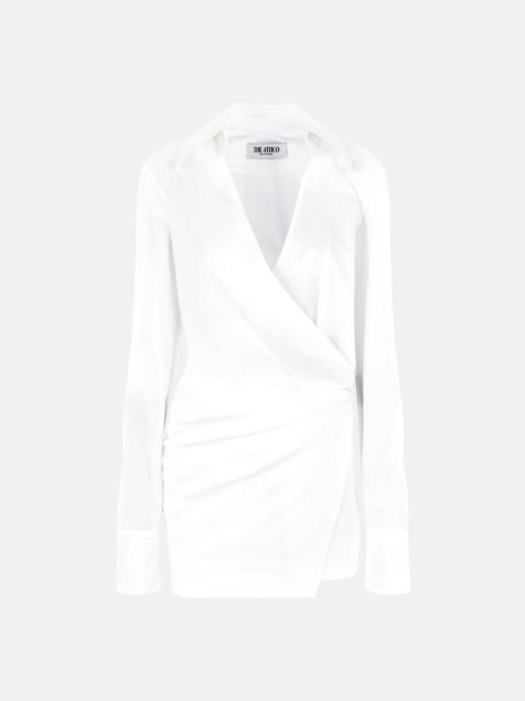 Mini shirt dress in white popeline draped on the front. Made in Italy. Style 250WCA00394CCC052AA001 SIZE & FIT The model is wearing a size 40 and her height is 69,6 in, bust 30,7 in, waist 23,2 in, hips 34,6 in - height 177 cm, bust 78 cm, waist 59 cm, hips 88 cm. Regular fit. We recommend taking your true size. DETAILS Main Material: 100% cotton