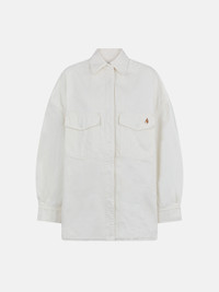 Oversize short coat in white denim with pockets and embroidered logo. Style 231WCB10D051001 SIZE & FIT The model is wearing a size 40 and her height is 179 cm, bust 80 cm, waist 60 cm, hips 90 cm. Relaxed, oversized fit. We recommend taking one size smaller. DETAILS Main fabric: 100% cotton