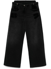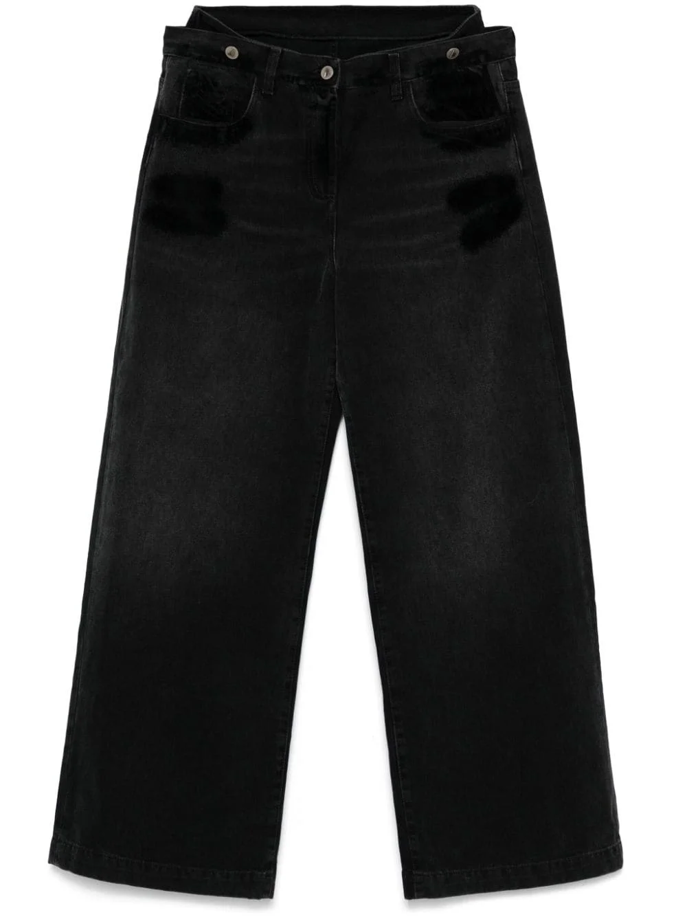 layered-waist jeans Highlights - Black - Cotton - Denim - Distressed effect - Layered waist - Logo patch to the rear - Embroidered logo to the rear - Logo-debossed buttons - Wide leg - Mid-rise - Concealed fly and button fastening - Belt loops - Classic five pockets - Straight hem Made in Italy Composition Lining: Polyester 65%, Cotton 35% Outer: Cotton 100% SIZE & FIT Model measurements Height 5 ft 10 in(1.78 m) Bust/Chest 33.07 in(84 cm) Hips 36.61 in(93 cm) Waist 24.8 in(63 cm) FittingInformation Designed with a wide leg cut, these jeans allow for a close fit at the waist and offer a loose and roomy fit over the leg Particularly long in length; consider your own measurements Sturdy and hard-wearing, this denim piece offers no stretch This piece fits true to size – take your usual size