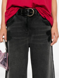 black cotton denim distressed effect layered waist logo patch to the rear embroidered logo to the rear logo-debossed buttons wide leg mid-rise concealed fly and button fastening belt loops classic five pockets straight hem Size & Fit Model Measurements: Height: 1.78 m Bust/Chest: 84.0 cm Hips: 93.0 cm Waist: 63.0 cm Model wears size 27 Fabric and Care Designer Style ID: 248WCP190D075 Designer Colour: 100 BLACK Composition: Outer: Cotton 100%; Lining: Cotton 35%, Polyester 65% Washing instructions: Machine Wash Made in Italy