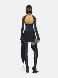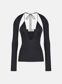 'Zane'' top in black shiny lycra with long sleeves, deep and crossed neckline and cylindrical logo metal ends. Made in Italy. Style 236WCT206PA44100 SIZE & FIT The model is wearing a size 40 and her height is 70,4 in, bust 30,7 in, waist 21,6 in, hips 34,6 in - height 179 cm, bust 80 cm, waist 60 cm, hips 90 cm. Regular fit. We recommend taking your true size. DETAILS Main fabric: 80% polyester 20% elastane, lining: 84% nylon 16% elastane