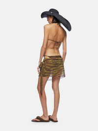 Pareo in dark green and dark brown zebra print muslin. Made in Italy. Style 250WCR00139CCC082PR997 SIZE & FIT The model's height is 5,10 in, bust 33 in, waist 24 in, hips 91,4 in - height 177 cm, bust 83 cm, waist 60,9 cm, hips 91,4 cm. One size. DETAILS Main material: 100% cotton, fringe: 100% cotton