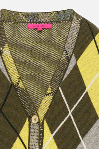 OUR 100% CASHMERE ARGYLE WOMEN'S CARDIGAN IN A HEAVY WEIGHT KNIT. MADE IN LOS ANGELES WITH HAND-POWERED KNITTING MACHINES, THIS STYLE FEATURES A STATELY ARGYLE STITCH. PAIR WITH OUR MATCHING ARGYLE WOMEN'S LOUNGE PANT THIS HOLIDAY SEASON. MATERIAL & CARE - 100% CASHMERE - MEDIUM WEIGHT KNIT - THE ELDER STATESMAN'S - FULLY FASHIONED KNITWEAR CARE - WE RECOMMEND DRY CLEAN ONLY - TO MAINTAIN ITS ORIGINAL SHAPE PLEASE FOLD THE GARMENT, AS HANGING KNITWEAR TENDS TO DISRUPT ITS GENUINE SILHOUETTE - PILLING MAY OCCUR DUE TO THE NATURE OF THE YARN. PLEASE USE CLOTHING SHAVERS THAT ARE DESIGNED FOR KNITWEAR & CASHMERE PILLING - TO AVOID EXCESS PILLING DO NOT PULL ANY PILLS ON THE GARMENT AND DO NOT TRY TO MANUALLY CLEAN A STAIN - STORE YOUR GARMENT IN A DRY, TEMPERATURE-CONTROLLED SPACE - TO STORE OUT-OF-SEASON GARMENTS, USE ANY KNITWEAR GARMENT STORAGE TO AVOID DUST AND PESTS - AVOID DIRECT SUNLIGHT TO PRESERVE THE COLOR SIZE & FIT - MEASUREMENTS FOR THE ARGYLE WOMEN'S CARDIGAN IN SIZE SMALL - BODY LENGTH 20 1/2" - ACROSS SHOULDER 18" - CHEST 19" - SLEEVE LENGTH 22"