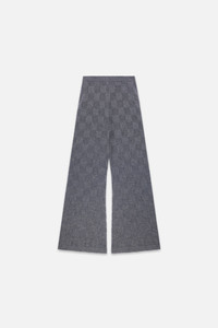 Lightly flared pant in cashmere with checkerboard texture. Pull on elastic waist and drawcord. Details - 100% cashmere - Made in US