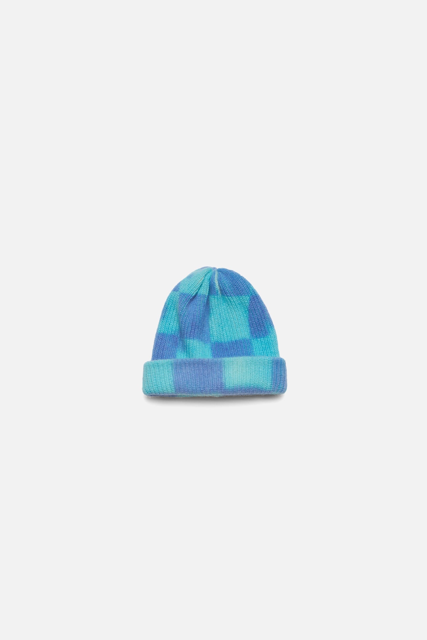 OUR CHESS BEANIE IN HEAVY WEIGHT KNIT IS MADE ON HAND-POWERED KNITTING MACHINES IN LOS ANGELES WITH THE SOFTEST ITALIAN CASHMERE. THIS HOLIDAY SEASON OUR NEW BEANIE FEATURES A CHECK HAND DYED TECHNIQUE. - AQUA & ANEMONE CASHMERE - CLOSE FIT - DOUBLE LAYERED - GATHERED CENTER - DOUBLE RIBBED & DOUBLE LAYERED - ADJUSTABLE CUFF MATERIAL & CARE - 100% CASHMERE - HEAVY-WEIGHT KNIT - THE ELDER STATESMAN'S - FULLY FASHIONED KNITWEAR CARE - WE RECOMMEND DRY CLEAN ONLY - TO MAINTAIN ITS ORIGINAL SHAPE PLEASE FOLD THE GARMENT, AS HANGING KNITWEAR TENDS TO DISRUPT ITS GENUINE SILHOUETTE - PILLING MAY OCCUR DUE TO THE NATURE OF THE YARN. PLEASE USE CLOTHING SHAVERS THAT ARE DESIGNED FOR KNITWEAR & CASHMERE PILLING - TO AVOID EXCESS PILLING DO NOT PULL ANY PILLS ON THE GARMENT AND DO NOT TRY TO MANUALLY CLEAN A STAIN - STORE YOUR GARMENT IN A DRY, TEMPERATURE-CONTROLLED SPACE - TO STORE OUT-OF-SEASON GARMENTS, USE ANY KNITWEAR GARMENT STORAGE TO AVOID DUST AND PESTS - AVOID DIRECT SUNLIGHT TO PRESERVE THE COLOR SIZE & FIT - MEASUREMENTS OF THE CHESS BEANIE - FRONT LENGTH 11 3/4" - BOTTOM OPENING 10 1/2"