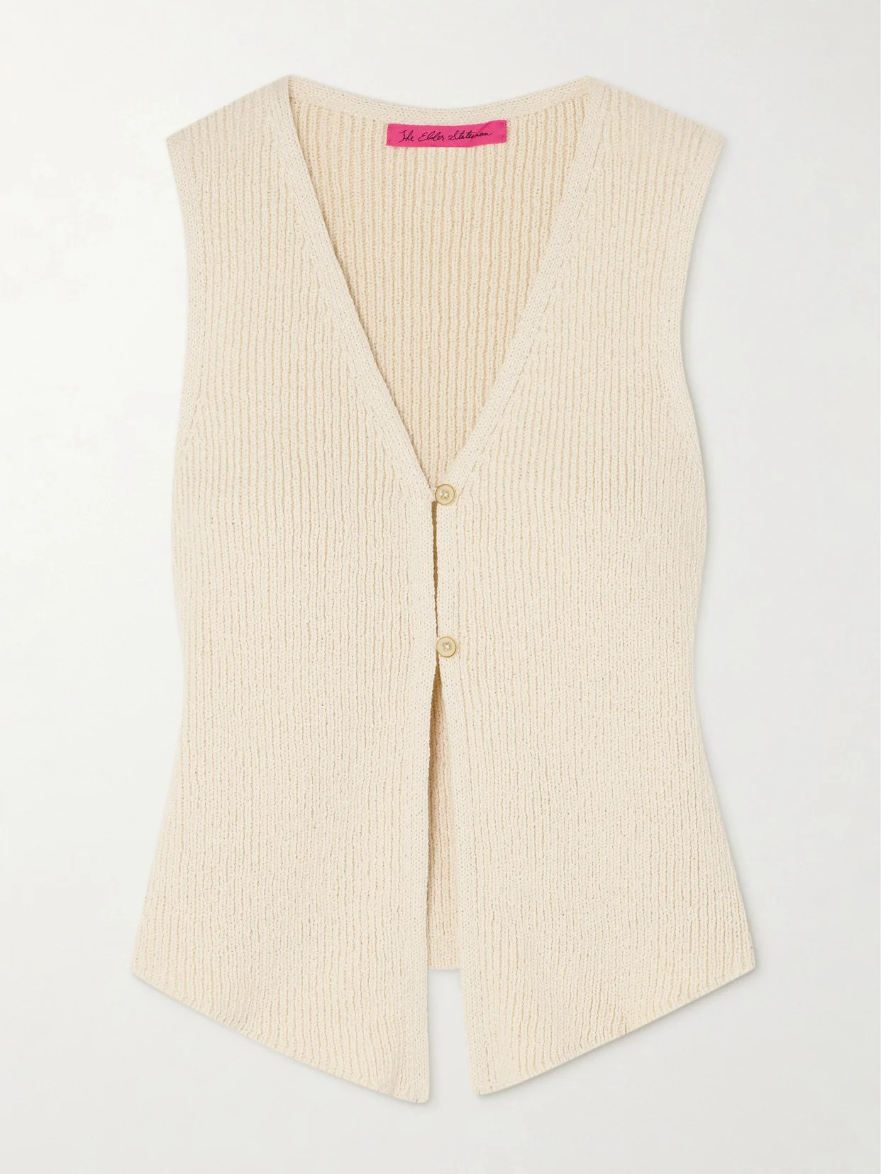 The Elder Statesman uses only the finest fabrics to ensure its knitwear lasts a lifetime with proper care. This 'Nora' vest is knitted from cotton and lightly ribbed for a slim fit. Wear yours with denim or tailored pants.