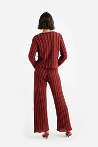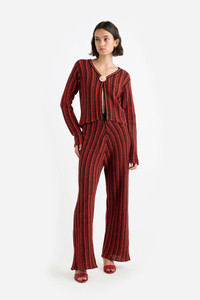 SLIGHT CROPPED V-NECK STRIPED SWEATER IN COTTON WITH AN OPEN NET STITCH, FLORAL SINGLE-BUTTON CLOSURE. SIZE GUIDE MATERIAL & CARE - - 100% COTTON - - SLIM FIT - - MADE IN THE US FROM IMPORTED MATERIALS - - MODEL IS 5’9” WITH A 24” WAIST AND 31” BUST, WEARING A SIZE SMALL SIZE & FIT - DRY CLEAN ONLY.