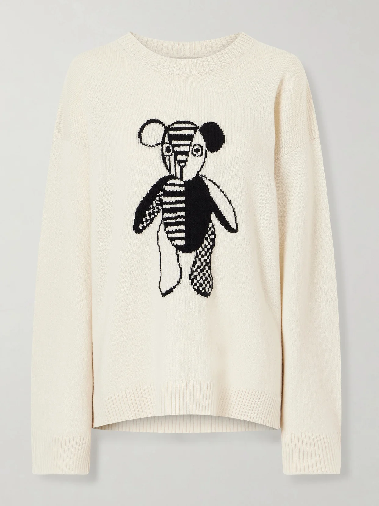 The Elder Statesman's sweater has been made in the USA from soft cashmere. It has a relaxed shape and a sweet teddy intarsia-knitted on the front. Wear yours at the weekend with jeans and ballet flats.
