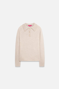 LONG-SLEEVE SWEATER IN HEAVYWEIGHT CASHMERE WITH ROLLED EDGE CUFFS AND HEM, 3-BUTTON CLOSURE, AND COLLAR. SIZE GUIDE SIZE & FIT - DRY CLEAN ONLY.