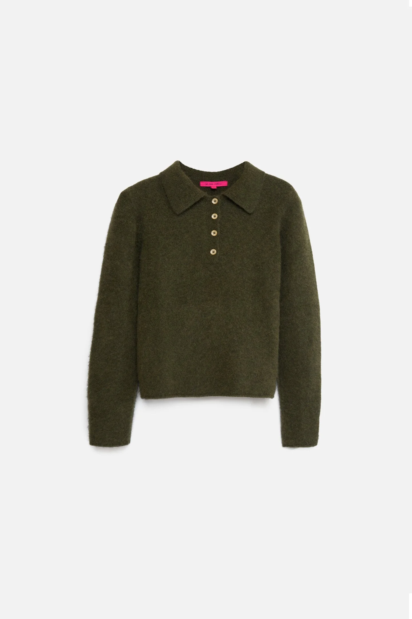 THE WOMEN'S FITTED POLO IS MADE OF THE SOFTEST ITALIAN CASHMERE. MADE IN LOS ANGELES WITH HAND-POWERED KNITTING MACHINES, THE FITTED POLO FEATURES A NEW TAILORED BODY. - NEW OLIVE CASHMERE - FITTED SILHOUETTE - COLLAR - 4 BUTTON CLOSURE - MADE IN LOS ANGELES, CALIFORNIA MATERIAL & CARE - 100% CASHMERE - HEAVY WEIGHT KNIT - THE ELDER STATESMAN'S - FULLY FASHION KNITWEAR CARE - WE RECOMMEND DRY CLEAN ONLY - TO MAINTAIN ITS ORIGINAL SHAPE PLEASE FOLD THE GARMENT, AS HANGING KNITWEAR TENDS TO DISRUPT ITS GENUINE SILHOUETTE - PILLING MAY OCCUR DUE TO THE NATURE OF THE YARN. PLEASE USE CLOTHING SHAVERS THAT ARE DESIGNED FOR KNITWEAR & CASHMERE PILLING - TO AVOID EXCESS PILLING DO NOT PULL ANY PILLS ON THE GARMENT AND DO NOT TRY TO MANUALLY CLEAN A STAIN - STORE YOUR GARMENT IN A DRY, TEMPERATURE-CONTROLLED SPACE - TO STORE OUT-OF-SEASON GARMENTS, USE ANY KNITWEAR GARMENT STORAGE TO AVOID DUST AND PESTS - AVOID DIRECT SUNLIGHT TO PRESERVE THE COLOR SIZE & FIT - MEASUREMENTS FOR THE WOMEN'S FITTED POLO IN A SIZE SMALL - BODY LENGTH 23“ - ACROSS SHOULDER 14 1/2“ - CHEST 18“ - SLEEVE LENGTH 25“
