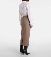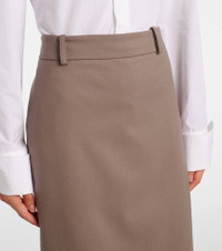 The Frankie Shop has captured the hearts of fashion insiders with their low-effort, high-impact essentials. The Alrose midi skirt features a classic pencil silhouette with a flattering high-rise waist. Product Details - Material: 54% polyester, 44% wool, 2% elastane - Care instructions: dry clean - Made in Serbia - Designer color name: Taupe - Item color: brown, gray - Lining: 100% polyester - Closure: invisible zipper - Belt loops - Item number: P01097079 Size & Fit - True to size - Non-stretchy fabric - slit length 36cm-14" - Height of model is 175cm-69" and wears a size XS