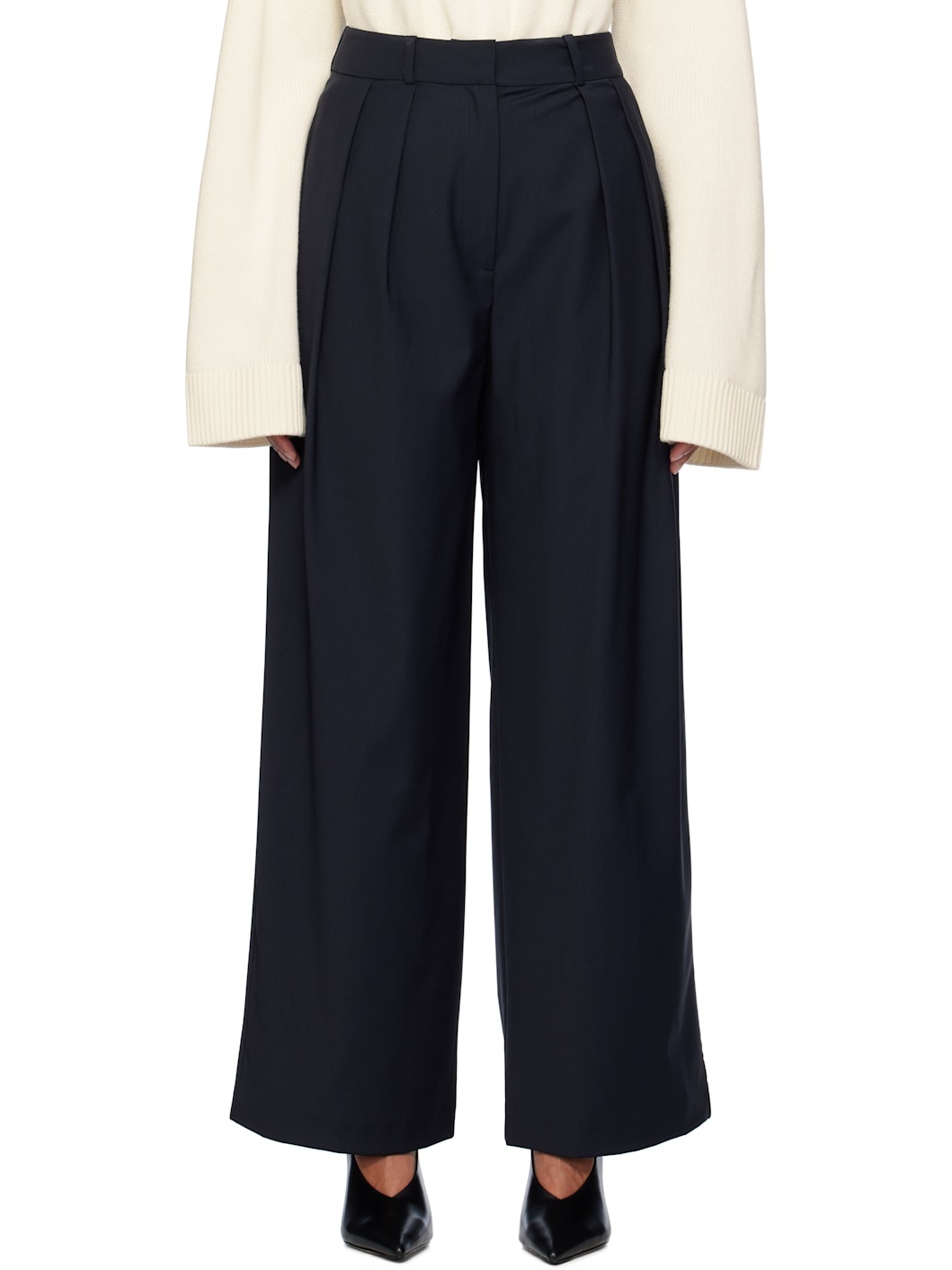 Navy Ripley Pleated Trousers
