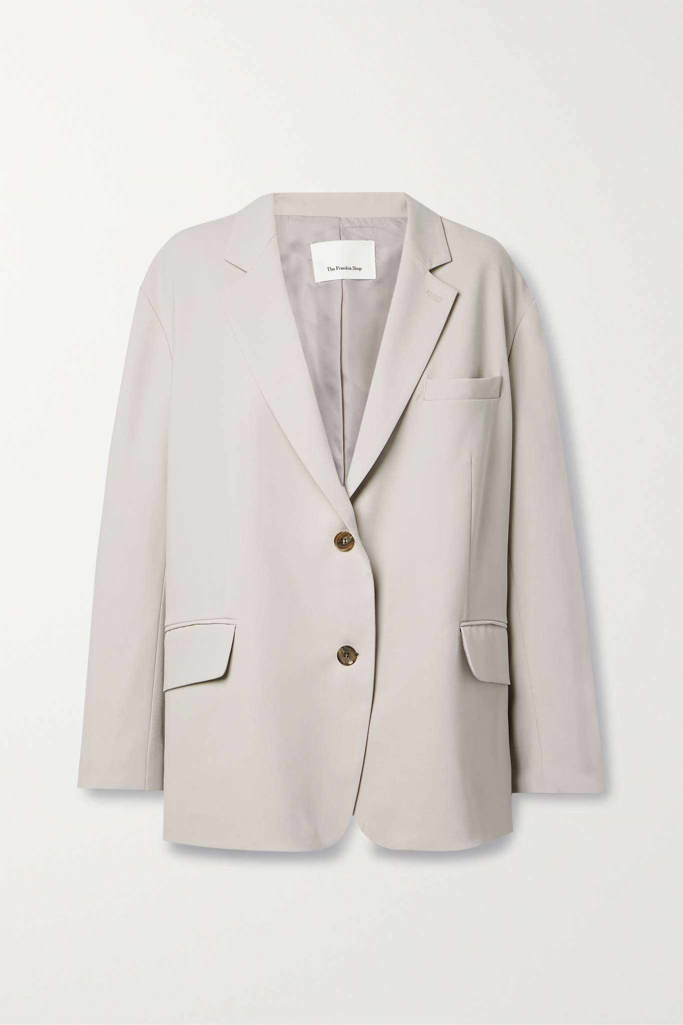 EDITORS'NOTES The Frankie Shop's 'Bea' blazer has a soft, unstructured design with dropped, padding-free shoulders that enhance the oversized shape. Tailored from cady, it's lined in smooth satin for easy layering and has slim notched lapels. Underpin yours with a bralette or turtleneck sweater. SIZE & FIT - Fits large to size, take one size smaller than normal - Designed for an oversized fit, cut to be worn very loose - Mid-weight, slightly stretchy fabric - Model is 177cm/ 5'10" and is wearing a size XSmall DETAILS & CARE - Gray cady - Button fastenings through front - 96% polyester, 4% elastane; buttons: 100% horn (Cow); lining: 100% polyester - Dry clean