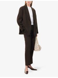 PRODUCT DETAILS - The Frankie Shop stretch-woven blazer - 96% polyester, 4% elastane; lining 100% polyester - Exposed button fastenings at front - Relaxed fit, single-breasted, notch lapels, long sleeves, buttoned cuffs, one chest welt pocket, two side flap pockets, two rear vents fully lined - Dry clean - Made in South Korea - True to size - Size small: length 30in / 76.5cm - Model is 5ft 10in/1.78m and wears a size small - Midweight, non-stretch Ref: R04500023