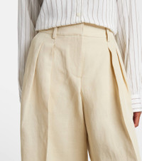 The Frankie Shop has captured the hearts of fashion insiders with their low-effort, high-impact essentials. The Bilbao Bermuda shorts are crafted from lightweight fabric and feature a classic silhouette with deep pleats on the front. Product Details - Material: 67% lyocell, 33% linen - Care instructions: hand wash - Made in China - Designer color name: Cement - Item color: beige - Lining: 100% polyester - Closure: zipper fly, button and hook fastenings - Pockets: slant pockets, back pocket - Belt loops - Item number: P01075507 Size & Fit - True to size - Non-stretchy fabric - Wide-leg - The model seen in the picture is 178cm-5'10" and wearing a size XS