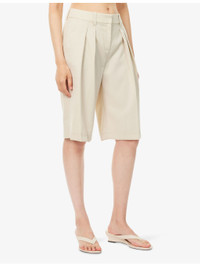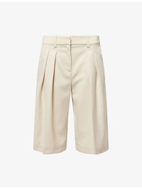 PRODUCT DETAILS - The Frankie Shop wool-blend shorts - 55% polyester, 45% virgin wool - Button, hook-and-eye and zip-fly fastening - Regular fit, mid-rise, structured waistband with belt loops, slip pockets at front, pleated design, pocket at back, twill woven texture - Dry clean - True to size - Size small: rise 11in / 28cm, inside leg 14in / 36cm, leg opening 25in / 64cm - Model is 5ft 10in/1.78m and wears a size small - Lightweight, non-stretch Ref: R04499791