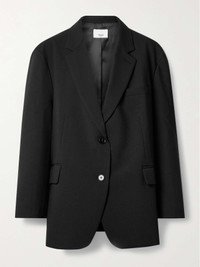 EDITORS'NOTES The Frankie Shop's 'Bea' blazer has a soft, unstructured design with dropped, padding-free shoulders that enhance the boxy silhouette. Tailored from crepe, it's lined in smooth satin for easy layering and has slim notched lapels. Wear yours with the matching pants and underpin it with a bralette or turtleneck sweater. SIZE & FIT - Fits large to size, take one size smaller than normal - Designed for an oversized fit, cut to be worn very loose - Mid-weight, slightly stretchy fabric - Model is 177cm/ 5'10" and is wearing a size XSmall DETAILS & CARE - Black crepe - Button fastenings through front - 96% polyester, 4% elastane; lining: 100% polyester - Dry clean