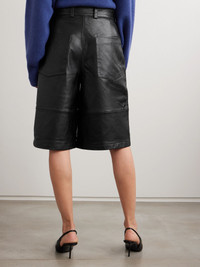Chic and a touch playful, The Frankie Shop's 'Olivia' shorts have a Bermuda cut and sleek concealed placket. They're tailored from beautifully soft leather and lined for comfort and structure. Size & Fit - Fits true to size, take your normal size - Mid-rise, cut for a loose fit - Supple, non-stretchy leather - Model is 177cm/ 5'10" and is wearing a size X Small Model measurements: - Bust: 85cm/ 33” - Waist: 66cm/ 26” - Hip: 92cm/ 36” Details & Care - Black leather - Concealed button, hook and zip fastening at front - 100% leather (Lamb) - Fully lined