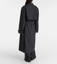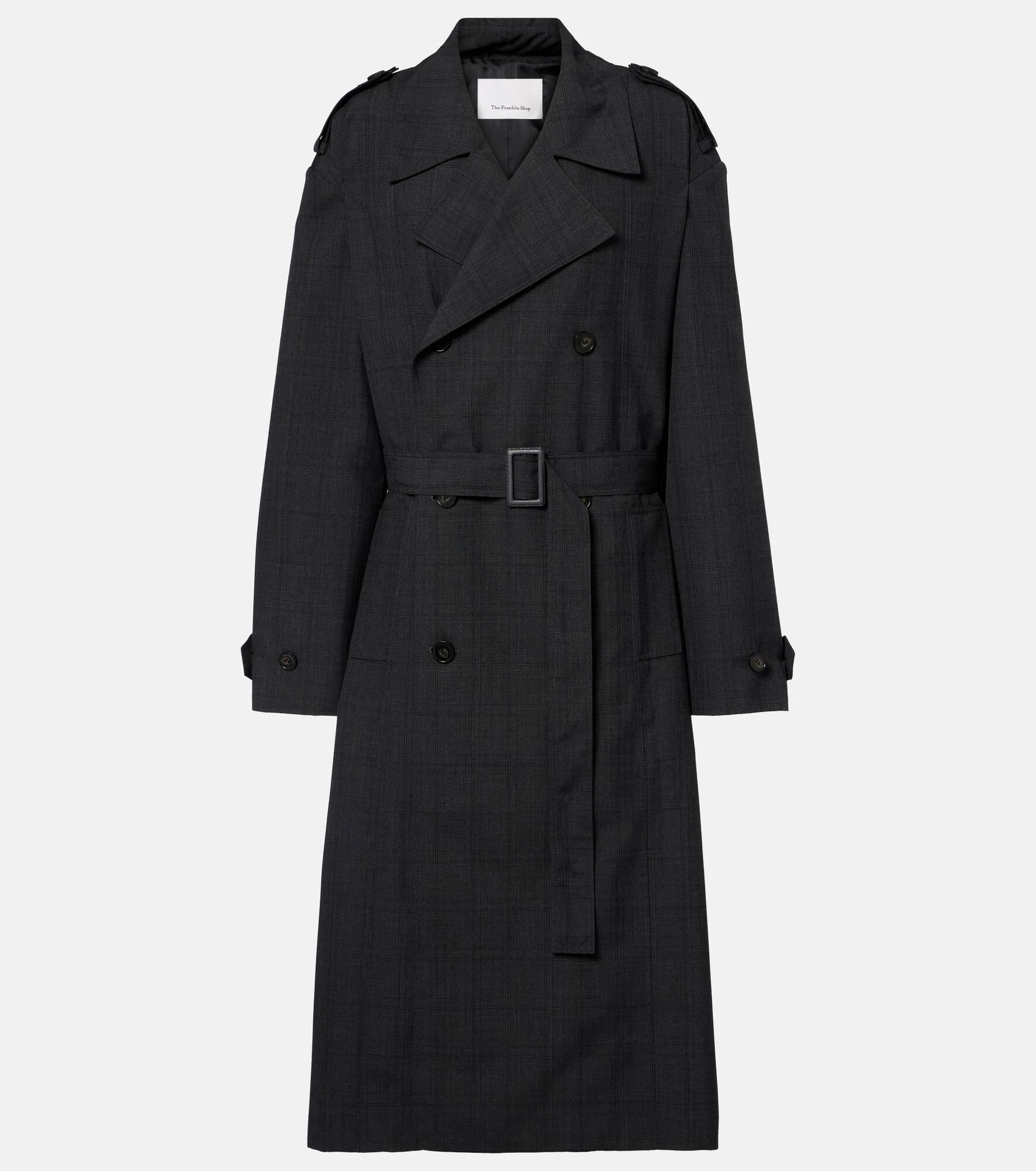 The Frankie Shop has captured the hearts of fashion insiders with their low-effort, high-impact essentials. The Bleecker trench coat is made from a wool-blend fabric with notched lapels, strong shoulders with epaulettes, and a matching belt. Product Details - Material: 55% polyester, 45% wool - Care instructions: dry clean - Made in Bosnia and Herzegovina - Designer color name: Dark Grey - Item color: gray - Lining: 100% polyester - Notched lapel - Epaulettes - Closure: double-breasted - Detachable belt - Pockets: side slit pockets - Cuff: tab cuff - Item number: P01100641 Size & Fit - Fits large to size - we recommend trying one size smaller - Shoulder pad inserts - Loose fit, comes with belt - Non-stretchy fabric - The model seen in the picture is 178cm-5'10" and wearing a size XS