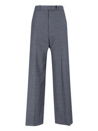 THE FRANKIE SHOP 'BRICKELL' GREY VIRGIN WOOL BLEND TROUSERS WITH HIGH WAIST, BELT LOOPS, HOOK, BUTTON AND ZIP CLOSURE, TWO SIDE POCKETS, ONE BACK POCKET, STRAIGHT LEG. PRODUCT INFO PRODUCT CODE BRICKELL FLANNEL TROUSERSGREY MELANGE COMPOSITION: 59% VIRGIN WOOL, 39% POLYESTER, 2% ELASTANE SIZE AND FIT: REGULAR FIT MADE IN: SERBIA