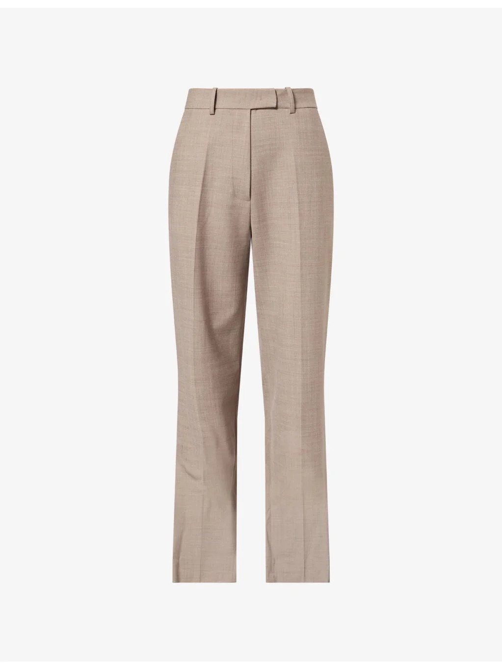 PRODUCT DETAILS - The Frankie Shop woven trousers - 53% polyester, 43% wool, 4% elastane - Concealed button, hook-and-eye and zip-fly fastenings at front - Regular fit, high-rise, wide-leg, belt loops, pressed crease at front and back, side slip pockets, welt pocket at back - Dry clean - True to size - Size small: rise 14in / 36cm, inside leg 31.5in / 80cm, leg opening 25in / 63.5cm - Model is 5ft 10in/1.78m and wears a size small - Midweight, non-stretch Ref: R04546941