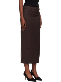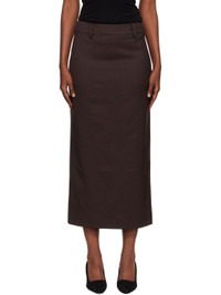 Stretch virgin wool-blend cavalry twill midi skirt. · Slim-fit · High-rise · Belt loops · Concealed zip closure at back · Central slit at back hem · Full satin lining Supplier color: Mocha Body: 54% polyester, 44% virgin wool, 2% elastane. Lining: 100% polyester. Made in France 252115F092003