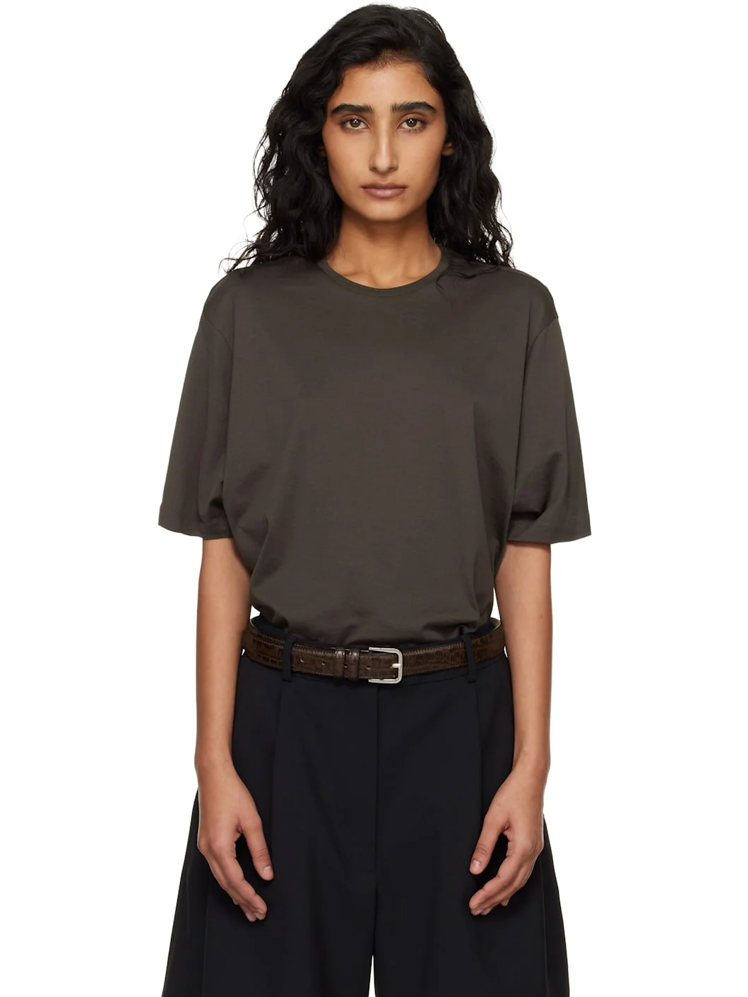 Organic cotton jersey T-shirt. · Rib-knit crewneck · Dropped shoulders Supplier color: Brown 100% organic cotton. Made in Portugal 261115F110005
