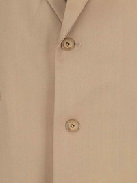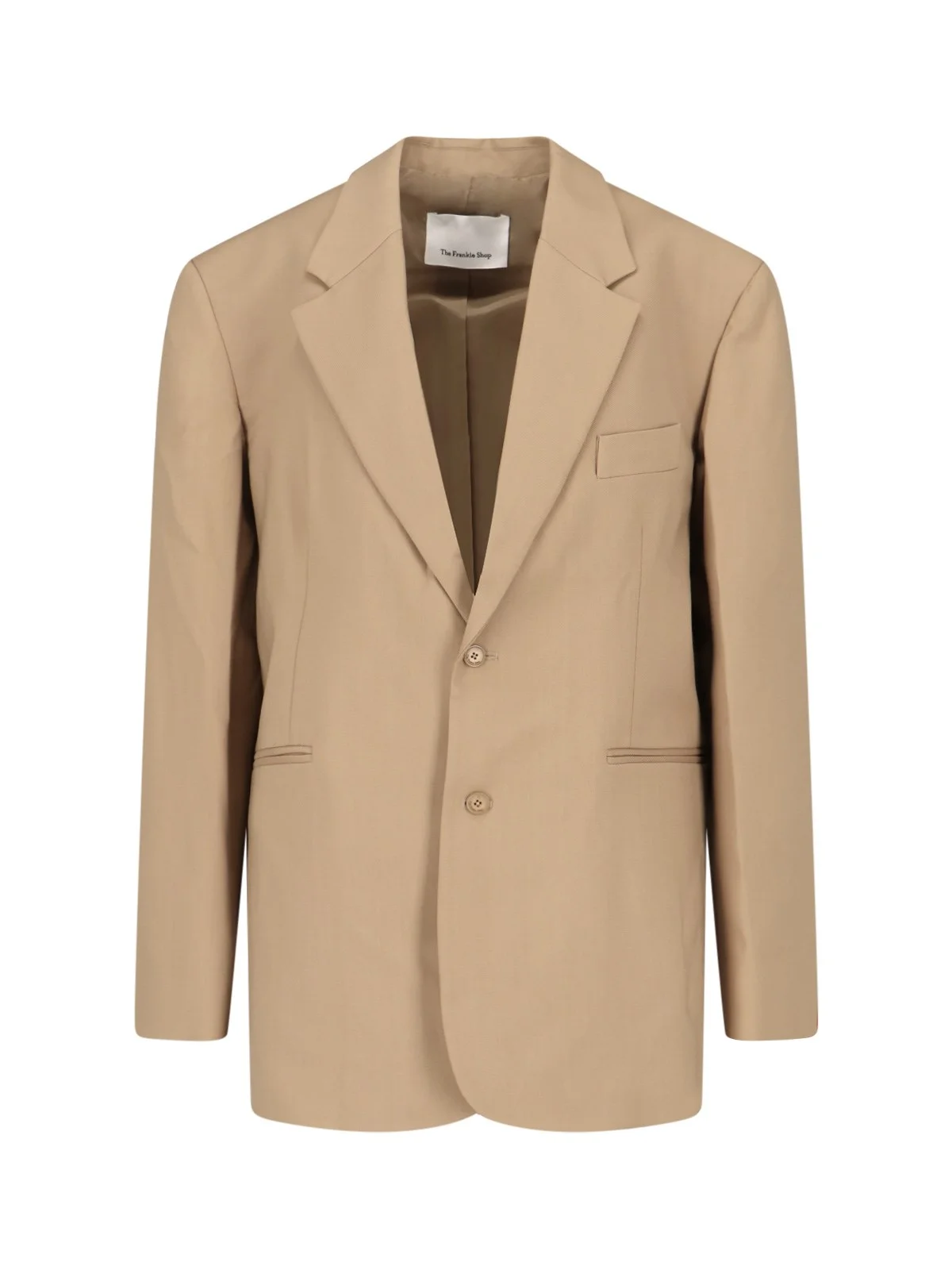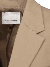 THE FRANKIE SHOP 'CROSBY' BLAZER IN BEIGE VIRGIN WOOL BLEND WITH CLASSIC LAPELS, CHEST POCKET, BUTTON CLOSURE, TWO SIDE POCKETS, SIDE BUTTON CLOSURE, BUTTON CUFFS, STRAIGHT HEM. PRODUCT INFO PRODUCT CODE CROSBY WRAP BLAZERCAMEL COMPOSITION: 54% POLYESTER, 44% VIRGIN WOOL SIZE AND FIT: SOFT FIT MADE IN: FRANCE