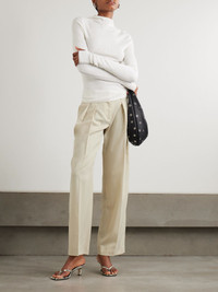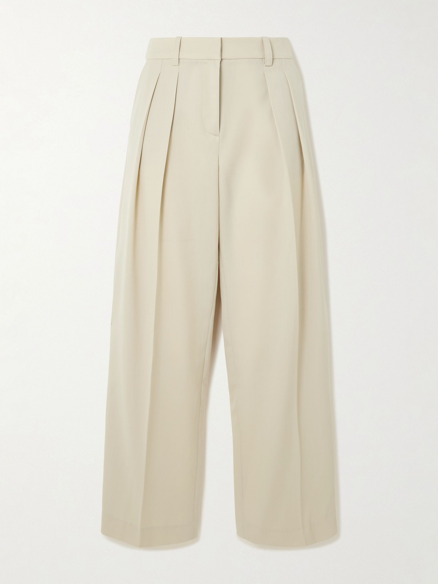 The Frankie Shop's 'Daytona' pants work all year round - style them with a vest and sandals in the warm season and a sweater and blazer in winter. Woven with plenty of wool, they're tailored in a relaxed, wide shape with double pleats at the front. They also have two handy side pockets, plus an extra at the back. Size & Fit - Fits true to size, take your normal size - Mid-rise, cut for a wide-leg fit - Lightweight, slightly stretchy fabric - Model is 180cm/ 5'11" and is wearing a size XSmall Model measurements: - Bust: 80cm/ 31.5" - Waist: 65cm/ 25.5" - Hip: 89cm/ 35" Details & Care - Sand grain de poudre - Concealed hook, button and zip fastenings at front - 55% polyester, 45% virgin wool; lining: 100% polyester - Dry clean - Designer color: Cement