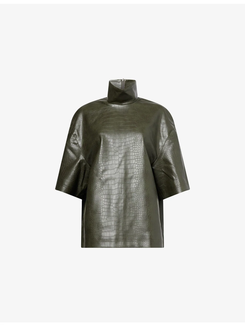 PRODUCT DETAILS - The Frankie Shop faux-leather top - 50% polyester, 50% polyurethane - Concealed zip fastening at back - Relaxed fit, high-neck, short sleeves, all-over croc-pattern, all-over faux-leather texture, fully lined - Specialist dry clean only - True to size - Size small: length 27in / 69cm - Model is 5ft 10in/1.78m and wears a size small - Lightweight, non-stretch Ref: R04546943