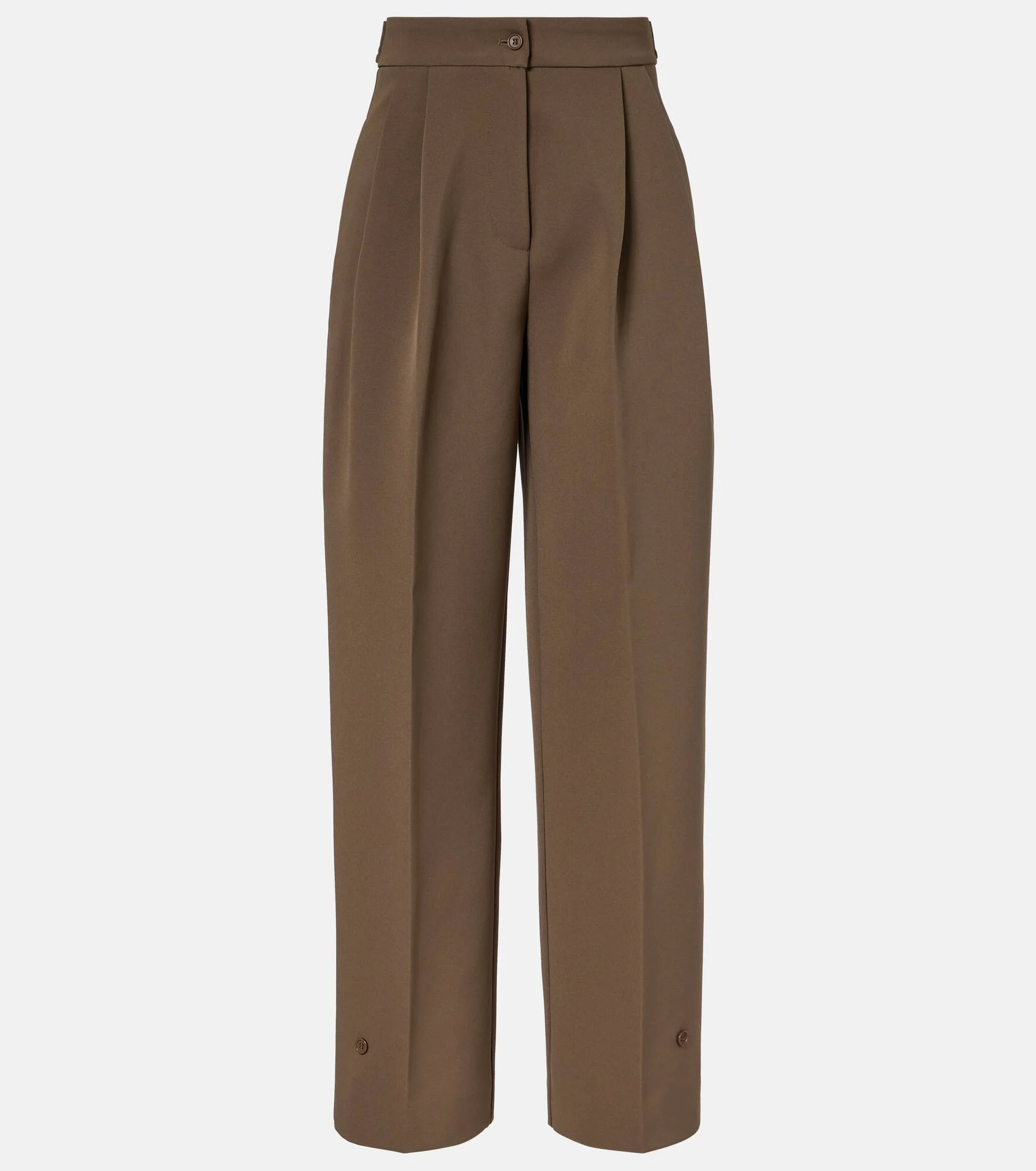 The Frankie Shop has captured the hearts of fashion insiders with their low-effort, high-impact essentials. Crafted from a mid-weight woven fabric, the Doyer pants feature a relaxed, wide-leg silhouette with pleated detailing. Product Details - Material: 87.5% polyester, 12.5% acetate - Care instructions: machine wash at 30 degrees - Made in Korea - Designer color name: Moss Green - Item color: brown - Closure: zip and button fastening - Pockets: side slit pockets, back pockets - Adjustable tabs at the waist - Double pleat - Item number: P01097072 Size & Fit - True to size - Non-stretchy fabric - Wide-leg - The model seen in the picture is 178cm-5'10" and wearing a size XS