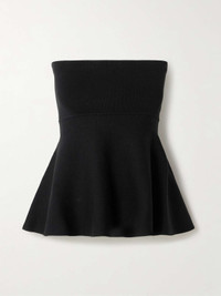 EDITORS'NOTES The Frankie Shop's collections are like a uniform for Parisian cool girls. Part of the brand's Fall '24 collection, this 'Agathe' top is cut from a compressive knit fabric to sculpt your figure, with a voluminous peplum that flares from the waist. The bustier silhouette will bare your decolletage, so add your favorite necklace or a sweep of highlighter. SIZE & FIT Model measurements: - Fits true to size, take your normal size - Designed for a close fit - Mid-weight knit - Model is 180cm/ 5'11" and is wearing a size XSmall - Bust: 80cm/ 31.5" - Waist: 65cm/ 25.5" - Hip: 89cm/ 35" DETAILS & CARE - Black viscose-blend - Slips on - 72% viscose, 28% polyester - Hand wash