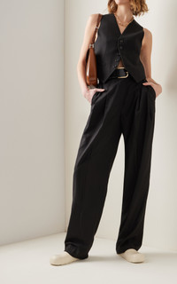 Instagram-famous label The Frankie Shop has garnered a cult following for its wardrobe staples that are classic but never boring. Founded by Gaelle Drevet, it's become our go-to for unfussy, on-trend basics that won't break the bank. Think: classic shapes with a twist. The 'Gelso' waistcoat has a boxy, oversized fit tailored from classic suiting fabric that cinches at the back for a closer fit. Team it with the matching trousers for a chic office look. PRODUCT DETAILS - Button fastenings at front - Composition: 65% lyocell, 25% rayon, 10% wool - Dry clean - Imported SIZE & FIT - Our model is wearing a size Small - Model is 5'10" with a 33" bust, 24" waist, and 36" hip