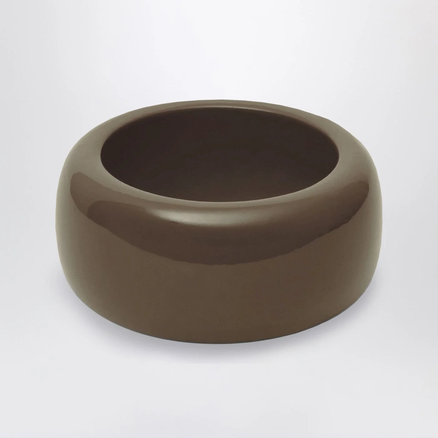 The Frankie Shop rigid bangle in glossy-finish resin featuring a round chunky shape and engraved logo.