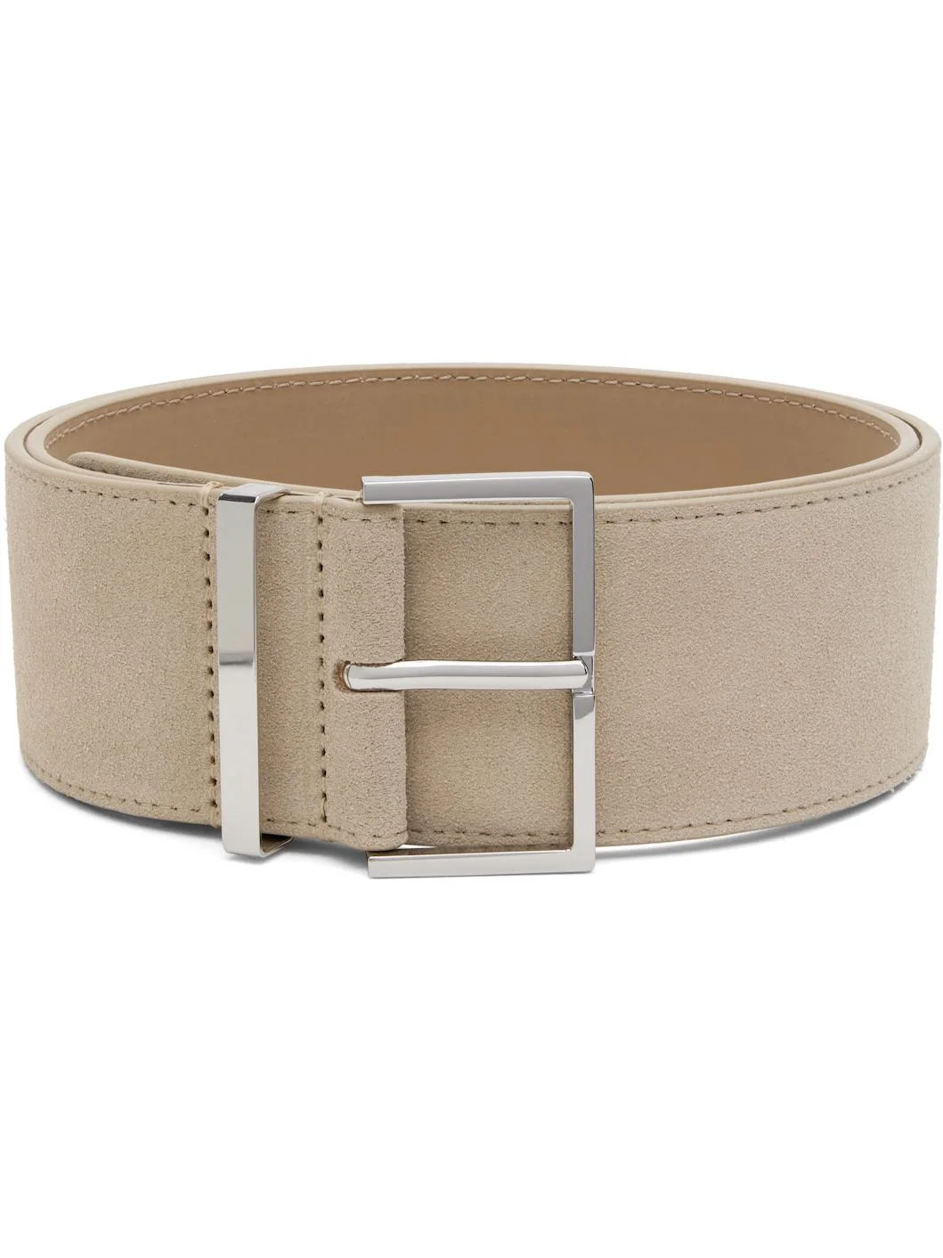 Suede belt. · Keeper loop · Pin-buckle fastening · Silver-tone hardware · W2" Supplier color: Cement Leather. Made in Italy 252115F001005