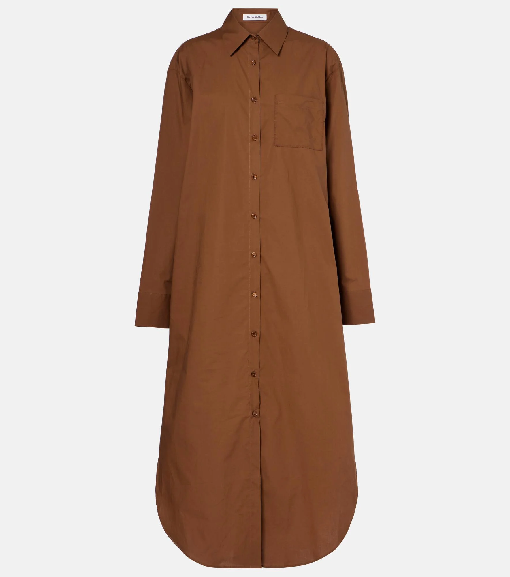 Crafted from lightweight cotton, the Helena shirt dress from The Frankie Shop comes with dropped shoulders and is cut to a relaxed silhouette. This design features a curved hem, side slits, and a chest pocket. Product Details - Material: 100% cotton - Care instructions: machine wash at 30 degrees - Made in Morocco - Designer color name: Brown - Item color: brown - Collar: classic (Straight point) - Closure: buttoned front - Pockets: utility chest pocket - Cuff: buttoned - Side slits - Item number: P01075524 Size & Fit - True to size - Dropped shoulders - Oversized - Non-stretchy fabric - The model seen in the picture is 178cm-5'10" and wearing a size XS