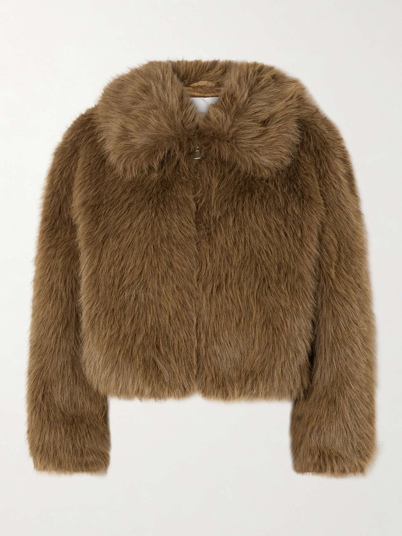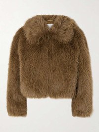 EDITORS'NOTES Thanks to the thick faux fur, The Frankie Shop’s ‘Hope’ jacket will keep you looking chic and feeling cozy all winter. Cut in an enveloping shape, it has a wide collar and gently elasticated cuffs to trap warmth, while the smooth satin lining ensures easy layering. SIZE & FIT Model measurements: - Fits true to size, take your normal size - Designed for a slim fit - Thick, non-stretchy fabric - Model is 175cm/ 5'9" and is wearing a size Small - Bust: 81cm/ 32" - Waist: 66cm/ 26" - Hip: 94cm/ 37" DETAILS & CARE - Camel faux fur - Zip fastening through front - 100% polyester; lining: 100% polyester - Dry clean