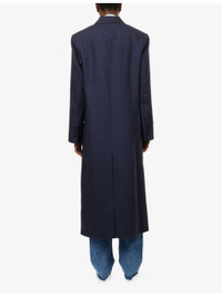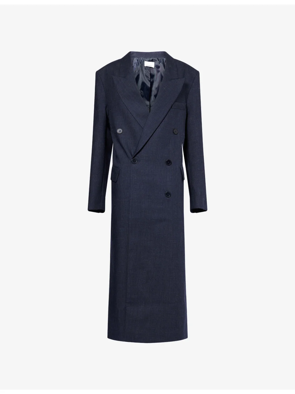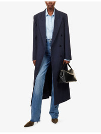 PRODUCT DETAILS - The Frankie Shop wool coat - 100% virgin wool; lining 100% polyester - Exposed button fastening at front - Relaxed fit, double-breasted, peak lapels, padded shoulders, long sleeves, buttoned cuffs, welt pocket and two flap pockets at front, fully lined, single vent - Dry clean - True to size - Size small: length 50in / 128cm - Model is 5ft 10in/1.78m and wears a size small - Lightweight, stretchy Ref: R04546946
