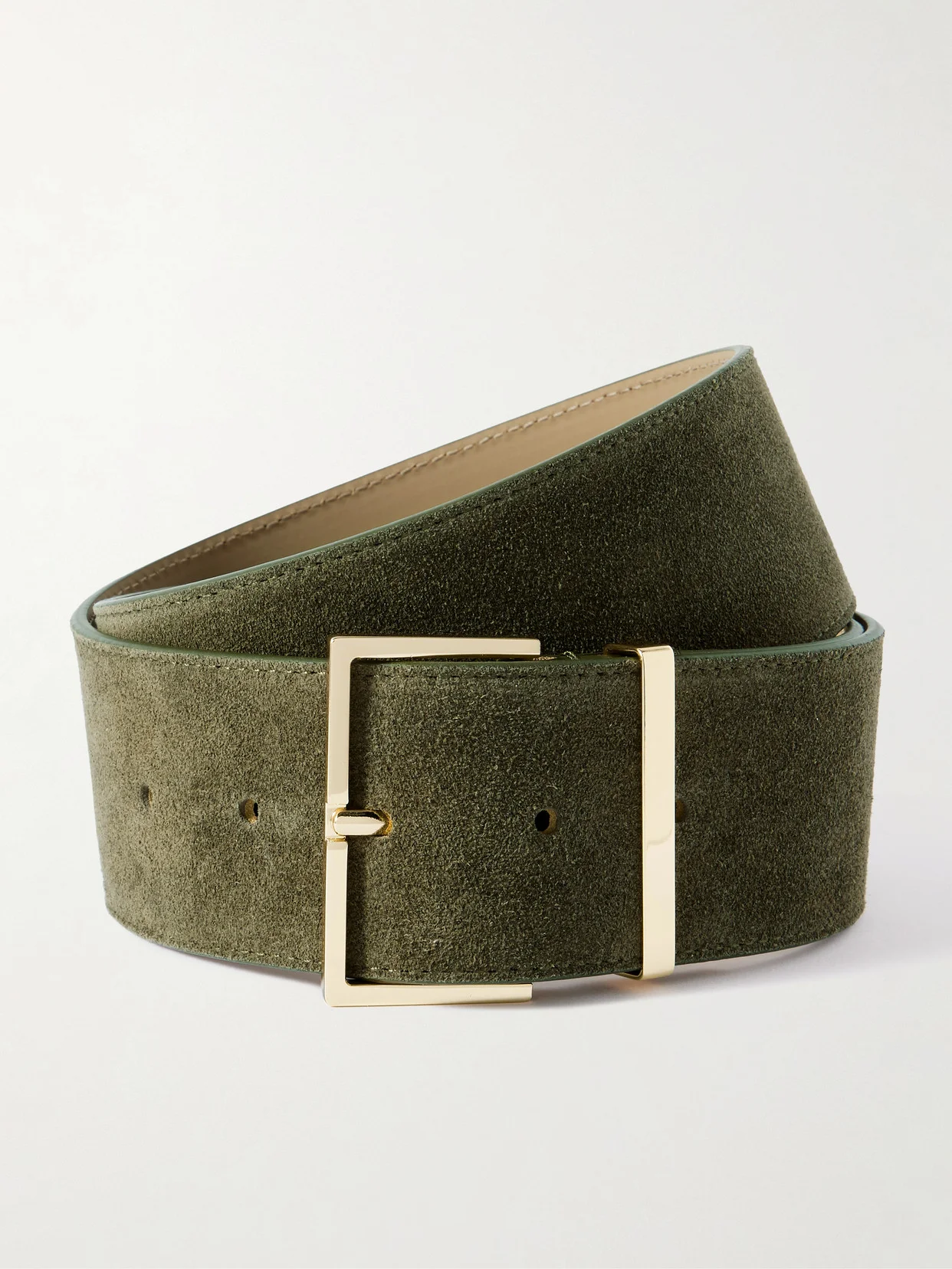 The Frankie Shop's 'Evro' belt will add a tactile touch to any outfit. It's been made in Italy from soft suede and has a wide shape tipped with a gold-tone buckle.