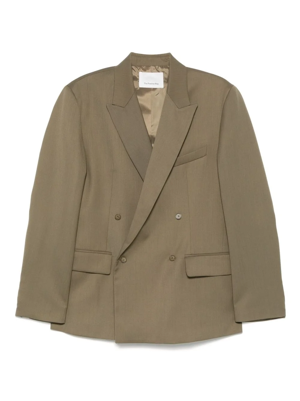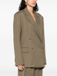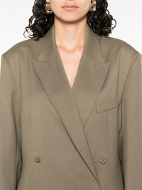 Newark blazer Highlights - Khaki - Double-breasted button fastening - Jetted chest pocket - Two front flap pockets - Buttoned cuffs Imported Composition Outer: Polyester 55%, Virgin Wool 45% Lining: Polyester 100% SIZE & FIT Model measurements Height 5 ft 10 in(1.79 m) Bust/Chest 33.07 in(84 cm) Hips 35.82 in(91 cm) Waist 24.01 in(61 cm) FittingInformation Designed for a relaxed fit, this piece allows for comfort and movement when worn The internal shoulder pads offer a structured shape Made from a midweight non-stretch fabric