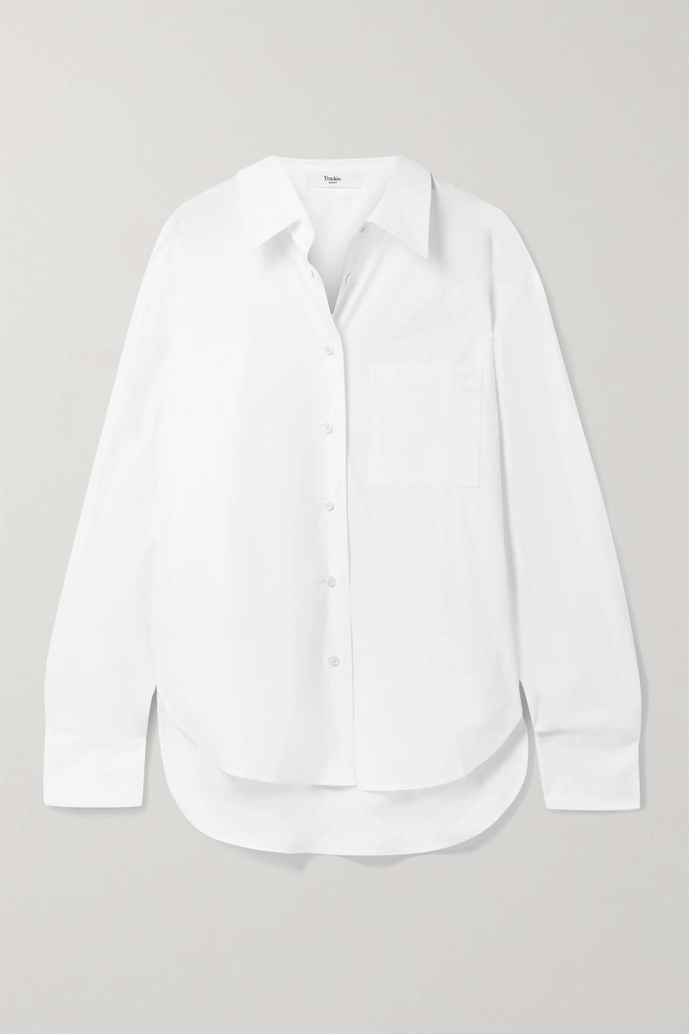 EDITORS'NOTES The Frankie Shop's basics are designed with timeless silhouettes and lasting quality, so you're sure to wear them often. This 'Lui' shirt is cut from organic cotton-poplin for a relaxed fit and has a rounded hem that's longer at the back. Wear yours with the matching shorts, jeans or tailoring, depending on the occasion. SIZE & FIT - Fits true to size, take your normal size - Cut for a relaxed fit - Dropped shoulder seam - Lightweight, non-stretchy fabric - Model is 177cm/ 5'10" and is wearing a size Small DETAILS & CARE - White organic cotton-poplin - Button fastenings through front - 100% organic cotton - Machine wash