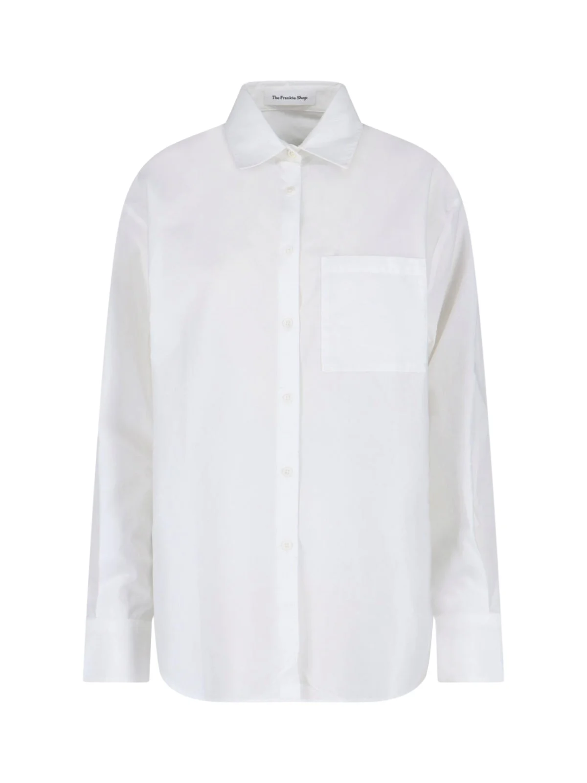 THE FRANKIE SHOP 'LUI' SHIRT IN WHITE ORGANIC COTTON POPLIN WITH COLLAR, LONG SLEEVES, FRONT BUTTON CLOSURE, BUTTON CUFFS, CURVED HEM. PRODUCT INFO PRODUCT CODE LUI ORGANIC COTTON SHIRTWHITE COMPOSITION: 100% ORGANIC COTTON SIZE AND FIT: REGULAR FIT MADE IN: MOROCCO - PRODUCT MADE FROM ORGANIC MATERIALS