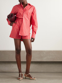 The Frankie Shop's 'Lui' shorts take cues from traditional men's boxers. Made from cotton-poplin, they're patterned with stripes and embroidered with a tonal logo at the elasticated waistband. We also have the matching shirt in our edit. Size & Fit - Fits true to size, take your normal size - High-rise, designed for a loose fit - Elasticated at the waist for a comfortable fit - Mid-weight, fluid, non-stretchy fabric - Model is 177cm/ 5'10" and is wearing a size Small Model measurements: - Bust: 80cm/ 31.5" - Waist: 60cm/ 23.5" - Hip: 89cm/ 35" Details & Care - Red, white and navy cotton-poplin - Pull on - 100% cotton - Machine wash